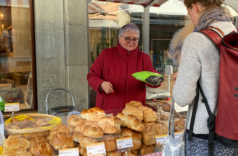 So kommuniziert Massimo Riboli auf seiner Webseite und hat damit vollkommen recht. Der Znünibeck am Obertor ist bekannt für sein knuspriges Brot und den feinen Brötchen in zig Variationen. Aber auch der traditionelle Sonntagszopf fehlt an seinem Stand nicht.