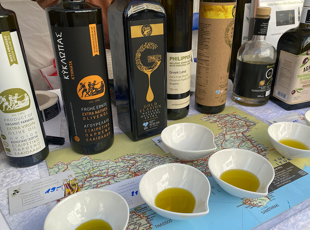 Die Wurzeln der beiden Winterthurer Marianna und Marcello Ceravolo Mitakidis liegen in Süditalien (Calabrien) und Griechenland (Evros) – genau gleich wie die ihrer Produkte. Mit ihrem Angebot an hochwertigstem, mehrfach prämiertem extra vergine Ölivenöl, diversen Honige, Teesorten, Küchenkräutern und marinierten Kalamataoliven unterstützen sie Griechenland mit ihren Direktimporten. Am Stand von Golden Food werden Sie immer mit einem herzlichen «Kalimera» begrüsst.